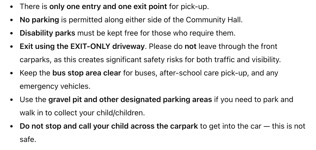 To help keep all our learners/whānau safe and ensure traffic flows safely and smoothly, we kindly ask that all parents and caregivers follow our pick-up and drop-off guidelines.